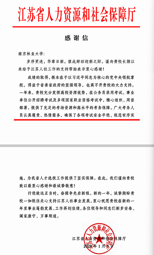 【精品一区二区三区四区中心讯】近日,我校收到江苏省人力资源和社会保障厅发来感谢信。信中对我校2025年在公务员录用考试、事业单位公开招聘考试中精心组织、周密部署,提供了充足的考场资源和高水平的考务保障表示感谢。